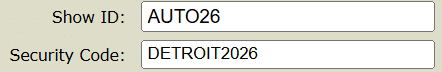 - Enter your email address and AUTO26 for the “Show ID” & DETROIT2026 for the “Security Code” to log in to the show.